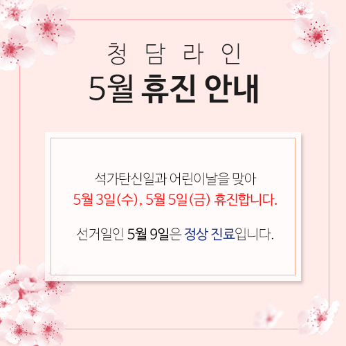 공지사항 | 5월 휴진안내입니다. 페이지 정보 작성자 청담라인의원 작성일17-04-26 17:07 조회10,465회 댓글0건 관련링크 이전글 다음글 목록 본문 5월 휴진안내입니다. 댓글목록 등록된 댓글이 없습니다. 이전글 다음글 목록